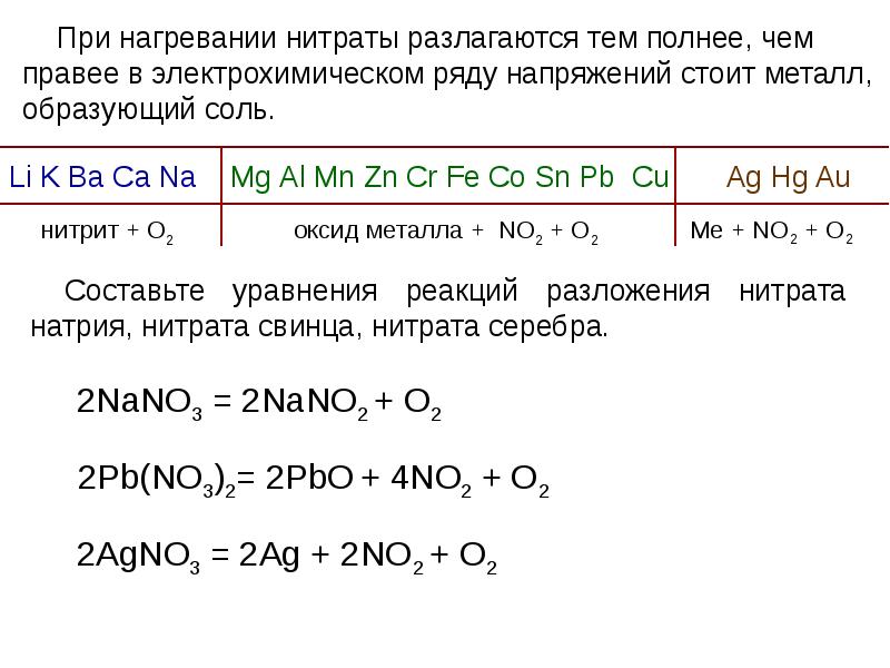 - 4. Соли азотистой кислоты называются нитритами Нитриты гораздо более устойчивы, чем HNO2,