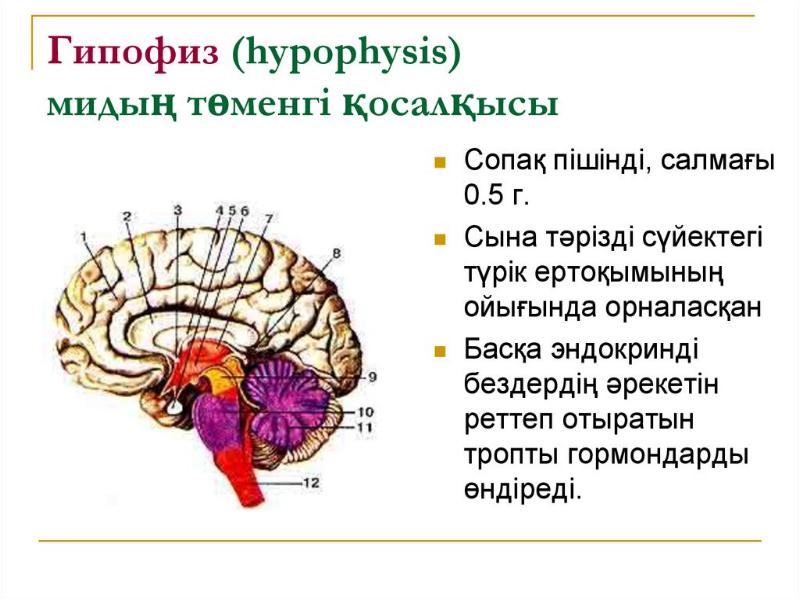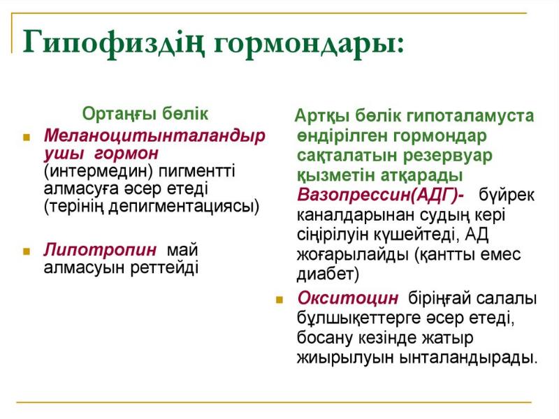 - 14. Гипоталамус Гипоталамустың түзетін заттары прогормон болып саналады. Гипофиздің артқы бөлімінде