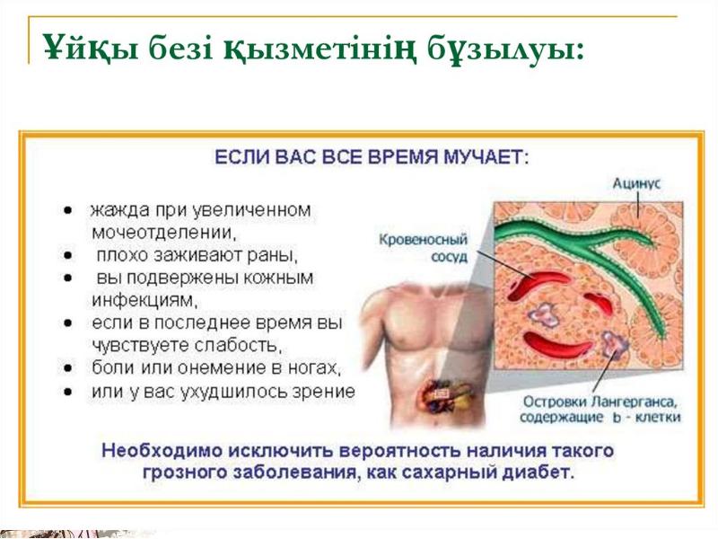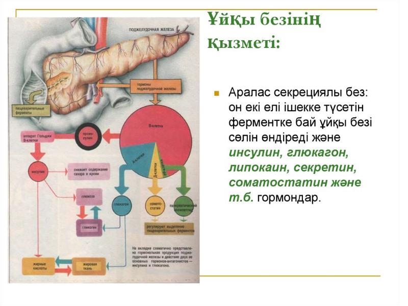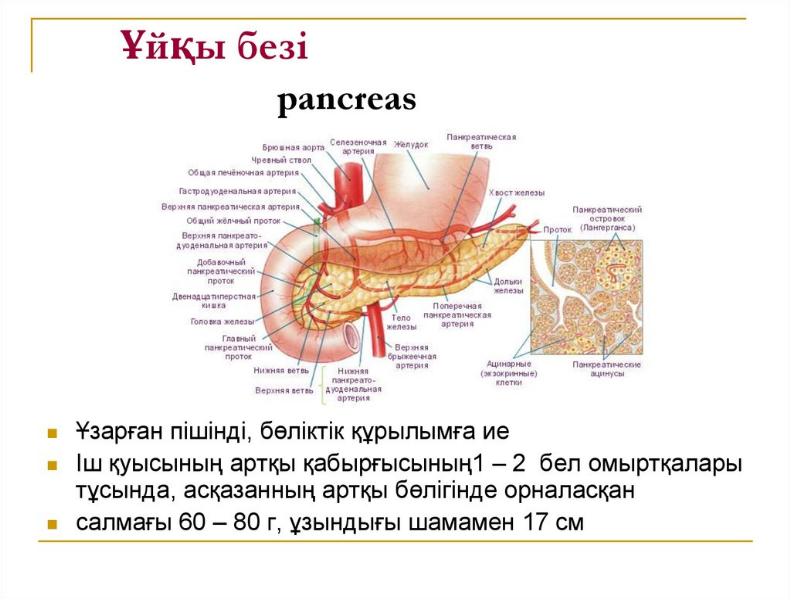 - 40. Ұйқы безі Ұйқы безі әрі ішкі, әрі сыртқы сөлініс қызмет атқарады.