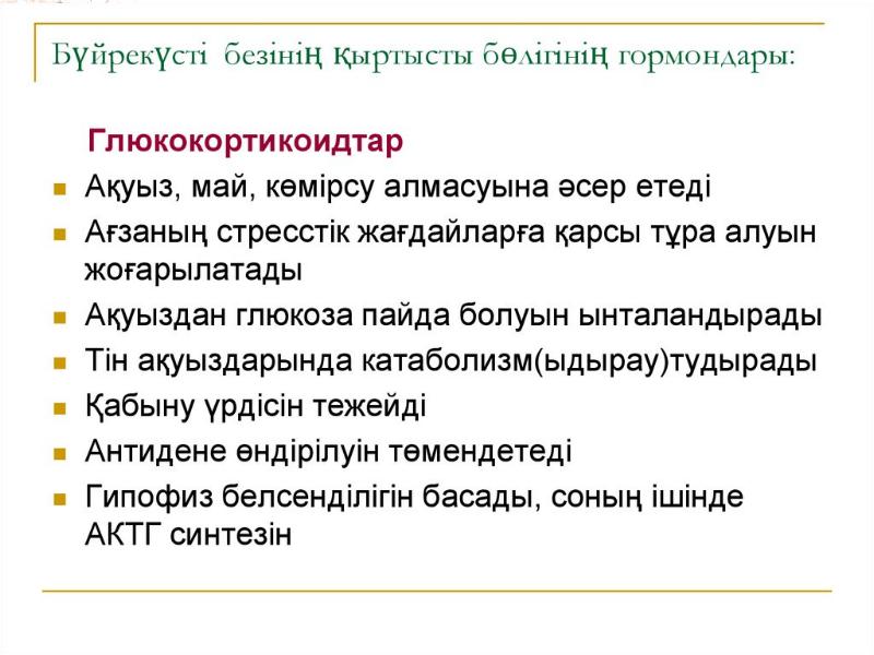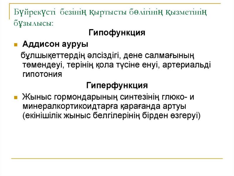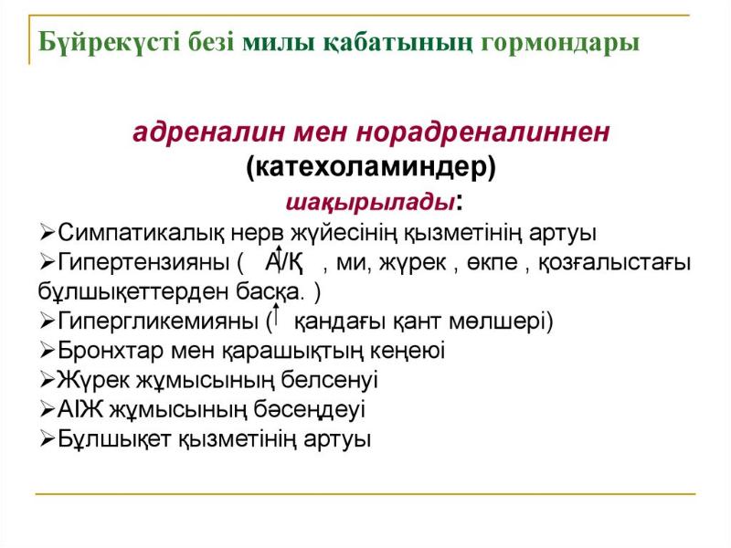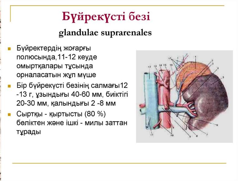 - 39. Бүйрек үсті безі: Бүйрекүсті бездері қыртысты және милы қабаттан тұрады.