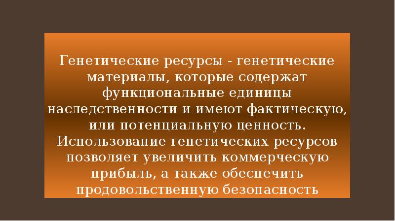 - 12. Генетические ресурсы - генетические материалы, которые содержат функциональные единицы наследственности и