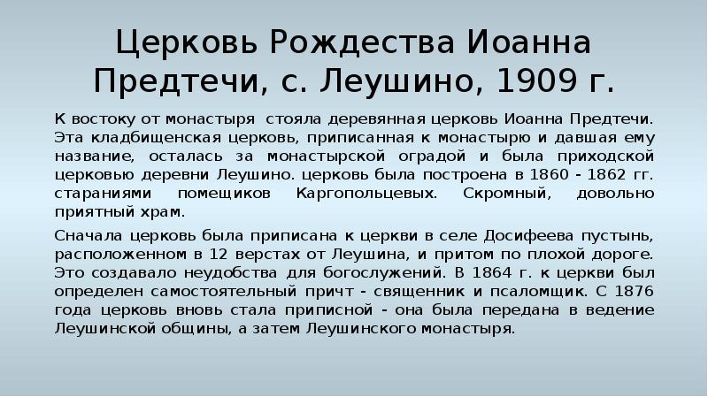 - 21. Церковь Рождества Иоанна Предтечи, с. Леушино, 1909 г. К востоку от