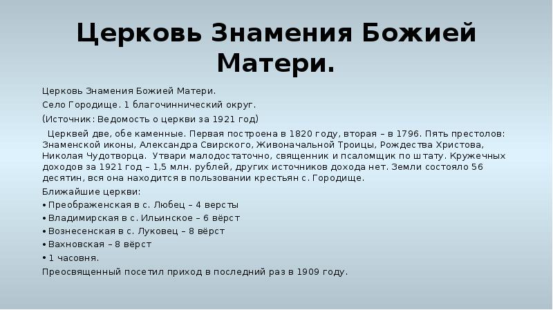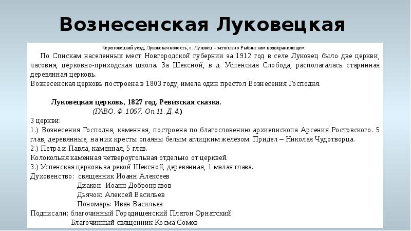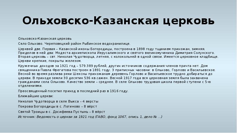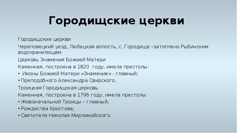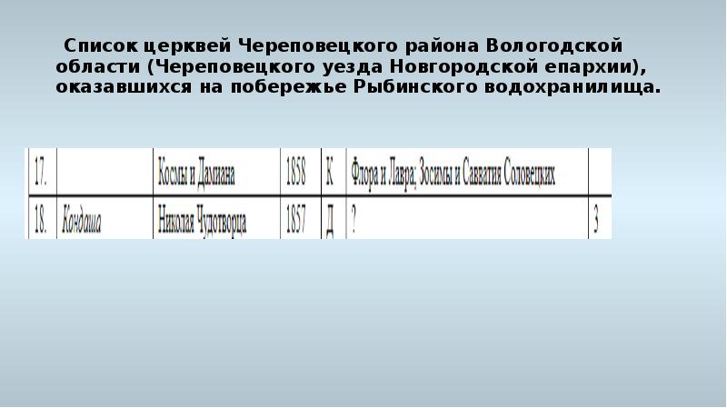 - 2. Список церквей Череповецкого района Вологодской области (Череповецкого уезда Новгородской губернии и