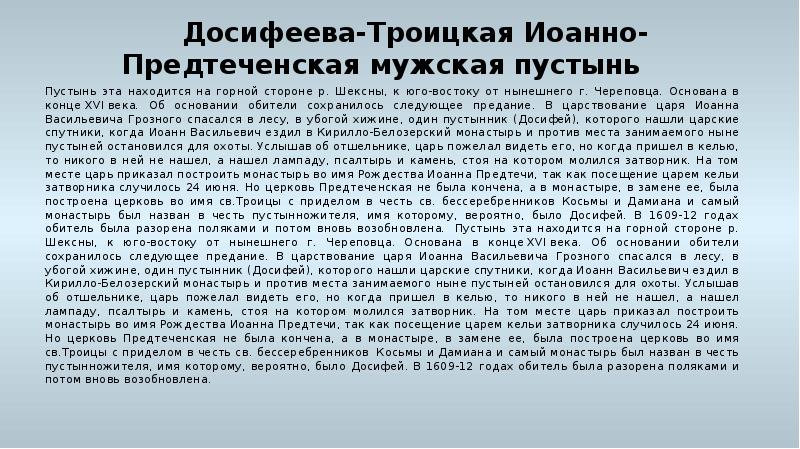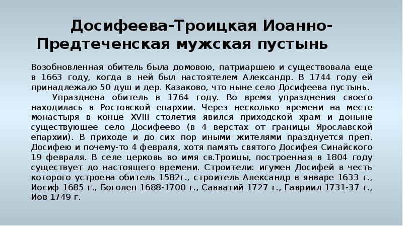 - 29. Досифеева-Троицкая Иоанно-Предтеченская мужская пустынь Возобновленная обитель была домовою, патриаршею и существовала