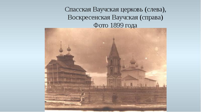 - 4. Спасская Ваучская церковь (слева), Воскресенская Ваучская (справа) Фото 1899 года