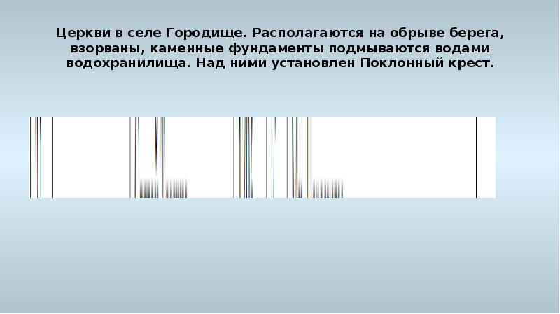 - 37. Церкви в селе Городище. Располагаются на обрыве берега, взорваны, каменные фундаменты