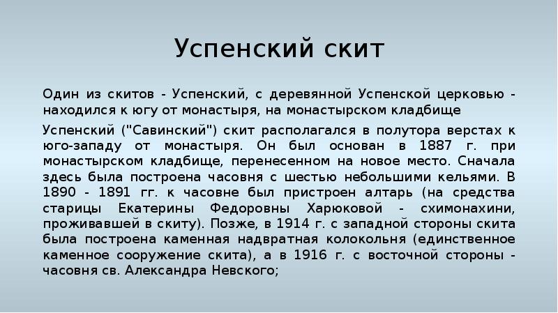 - 49. Успенский скит Один из скитов - Успенский, с деревянной Успенской церковью