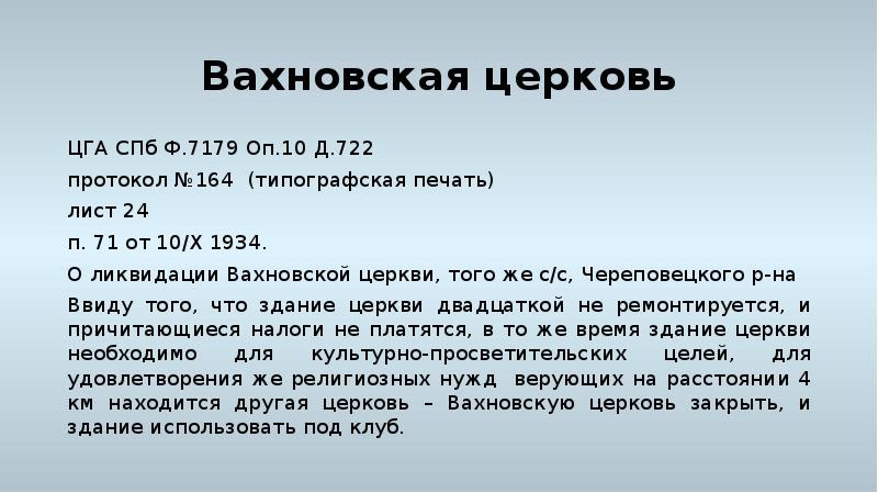 - 10. Вахновская церковь ЦГА СПб Ф.7179 Оп.10 Д.722 протокол №164 (типографская печать)