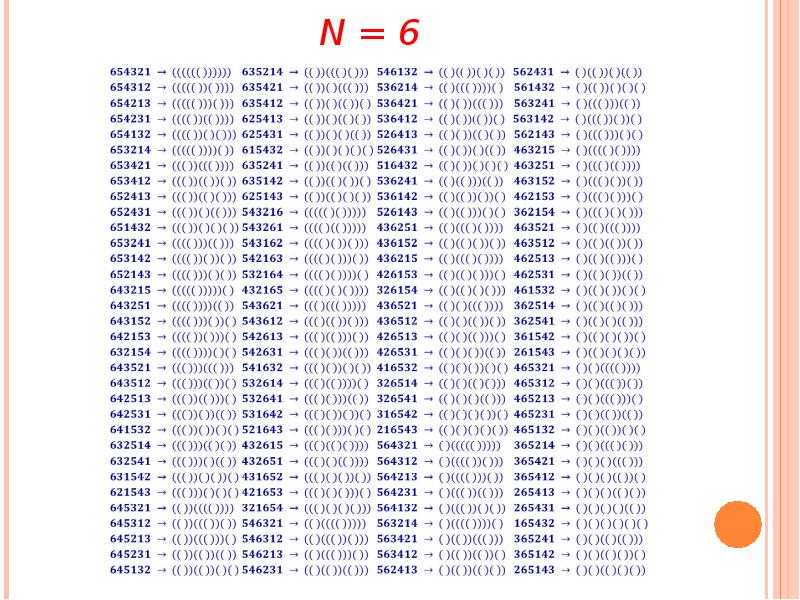 - 13. СКОБОЧНЫЕ СТРУКТУРЫ В перестановке скобок из задачи Каталана уберём все буквы