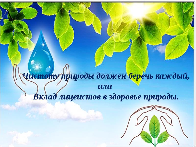 Чистоту природы должен беречь каждый, или Вклад лицеистов в здоровье природы презентация