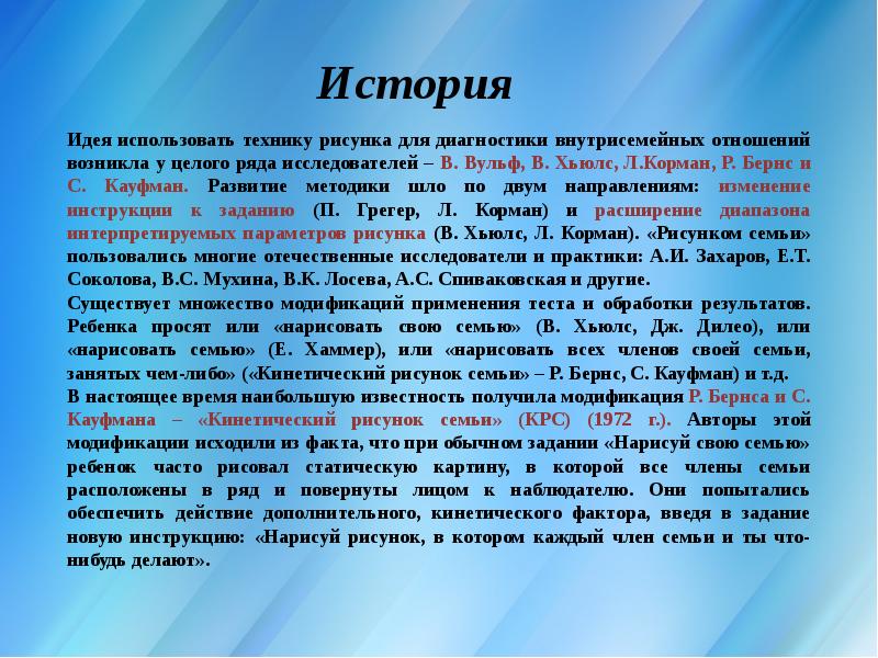 Диагностическая проективная методика «Кинетический рисунок семьи» КРС Р. Бернса презентация