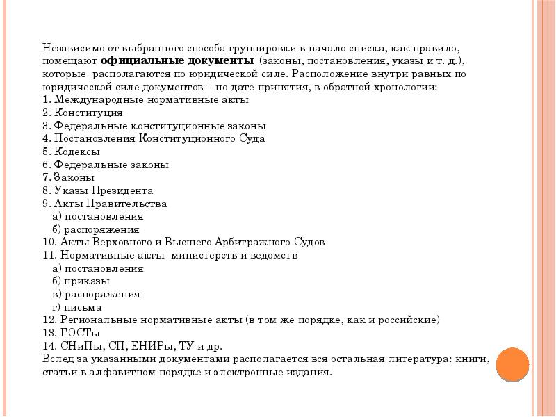 - 3. Рекомендуются следующие варианты заглавия списка: список использованной литературы; список использованных источников
