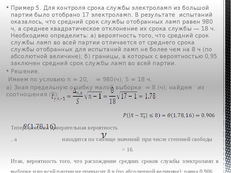 - 12. Пример 5. Для контроля срока службы электроламп из большой партии было