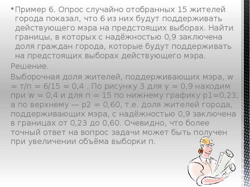 - 14. Пример 6. Опрос случайно отобранных 15 жителей города показал, что 6