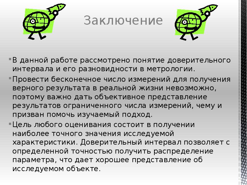 - 15. В данной работе рассмотрено понятие доверительного интервала и его разновидности в