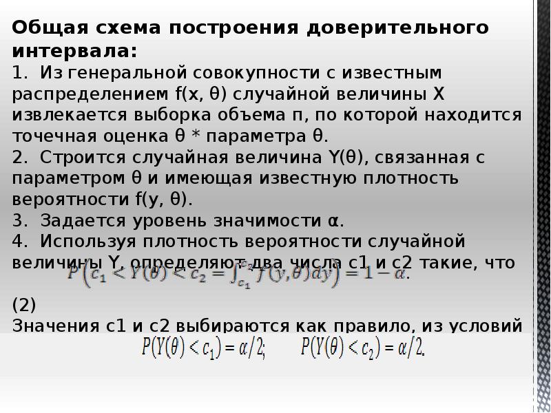- 3. После получения точечной оценки θ* желательно иметь данные о надежности такой