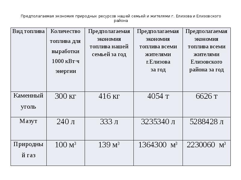 - 23. Предполагаемая экономия природных ресурсов нашей семьей и жителями г. Елизова и