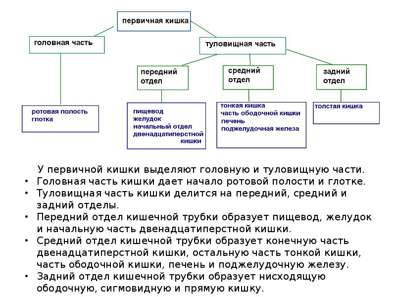 - 3. Первичным зачатком пищеварительной системы является энтодермальная трубка, замкнутая спереди и переходящая