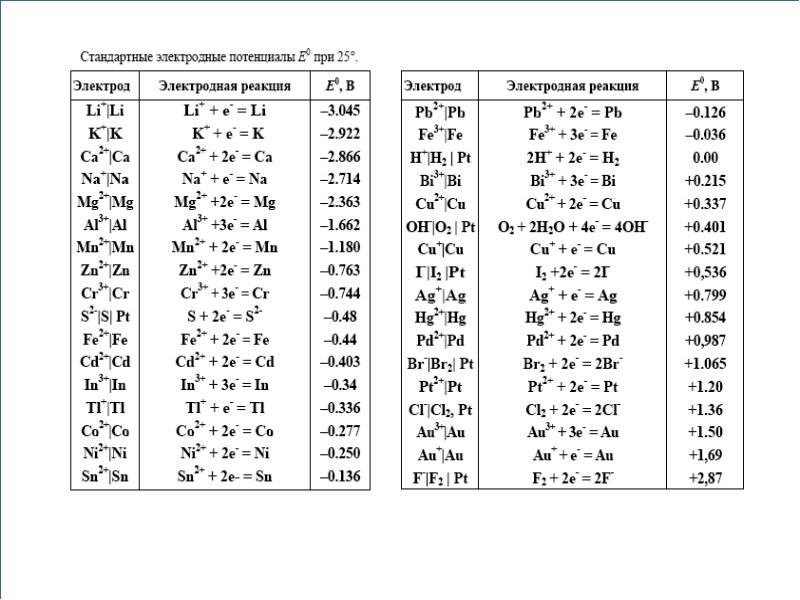 - 12. Установка для измерения потенциалов A: Zn – 2 ē =