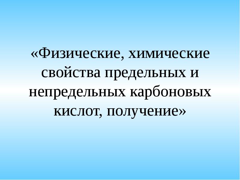 Скачать презентацию на тему Физические, химические свойства предельных и непредельных карбоновых кислот, можно ниже: