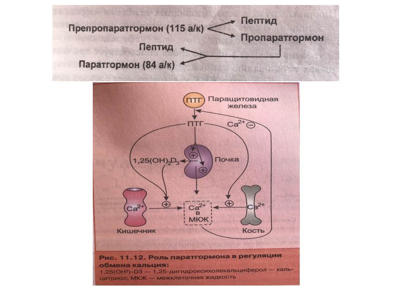 - 15. Паратгормон - пептид из 84 аминокислот, выделяется при уменьшении содержания кальция