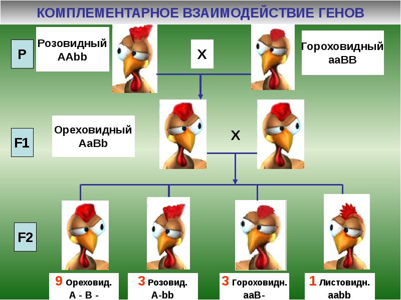- 15. Комплементарность – тип взаимодействия неаллельных генов, в результате которого признака