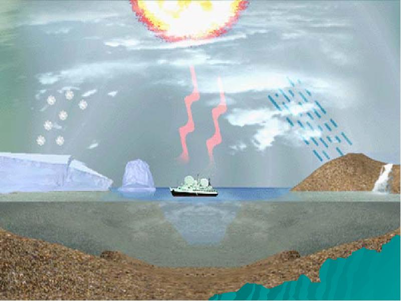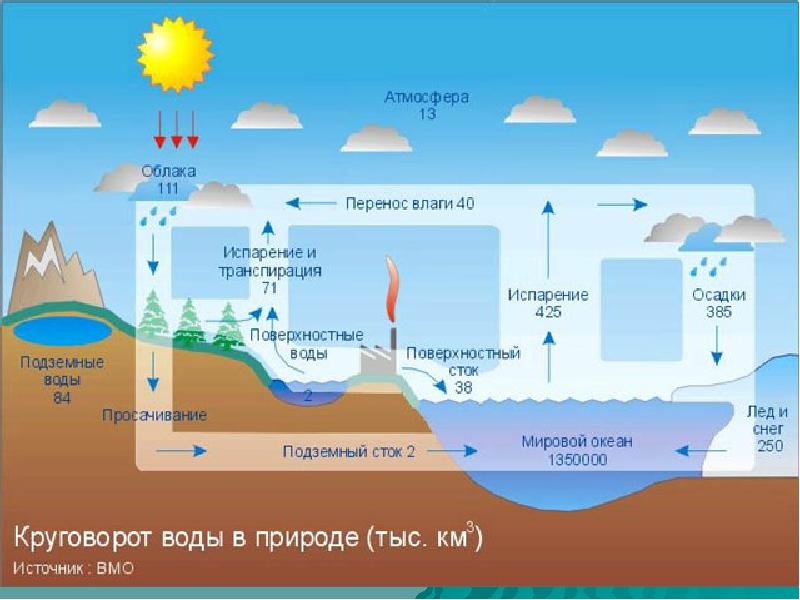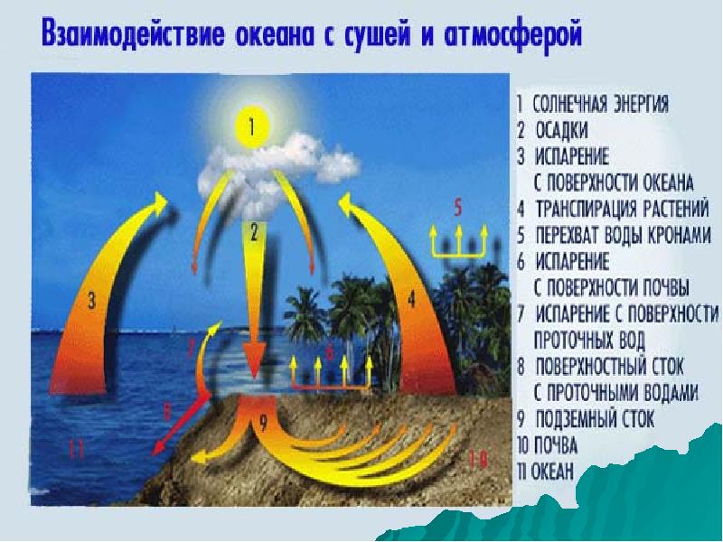 - 18. Круговорот воды обеспечивает взаимодействие Мирового океана с атмосферой. Атмосфера защищает воды