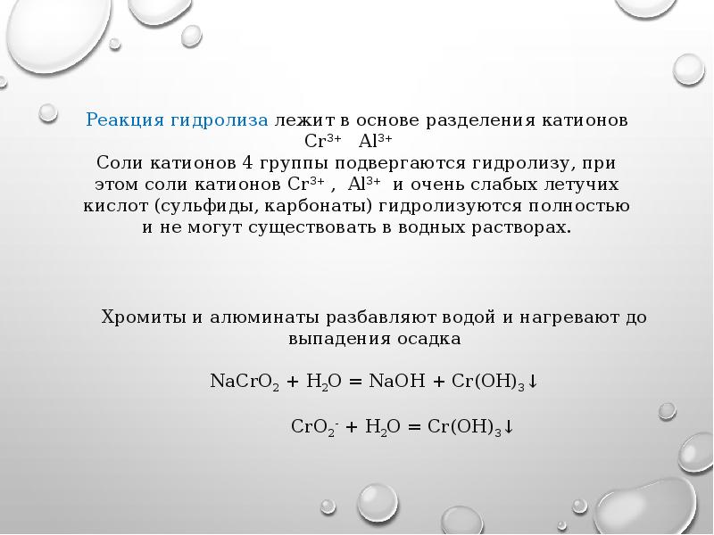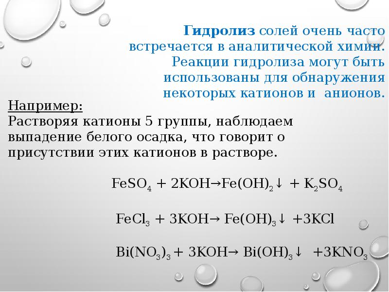 - 12. Гидролиз по катиону соли Реакции гидролиза иногда мешают проведению анализа. В