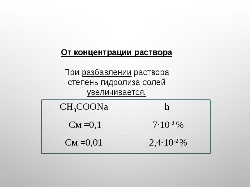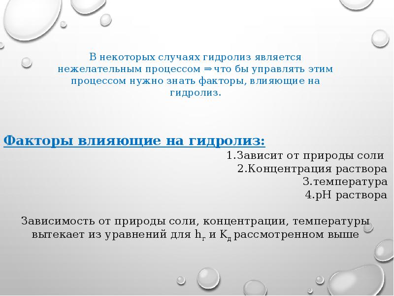 Гидролиз. Константа и степень гидролиза. рН растворов гидролизующих солей презентация