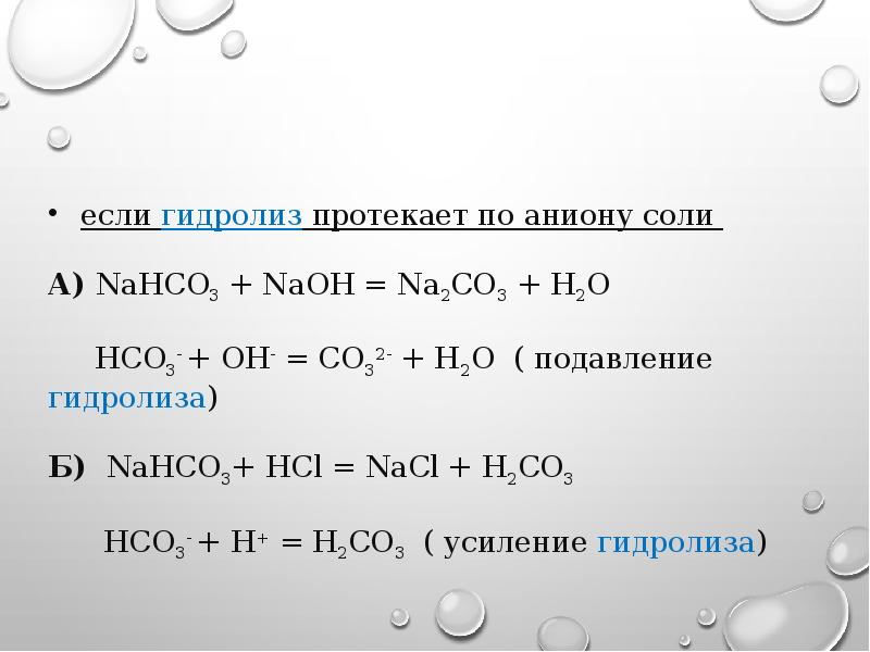 - 13. Гидролиз по катиону Для подавления гидролиза вводят HCl, которая смещает равновесие
