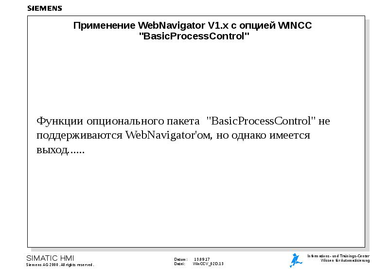 - 13. Применение WebNavigator V1.x с опцией WINCC "BasicProcessControl"