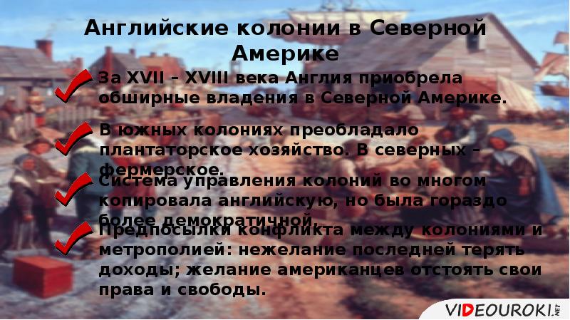 Каковы основные причины конфликта Англии и её колоний в СевернойДомашнее задание:
