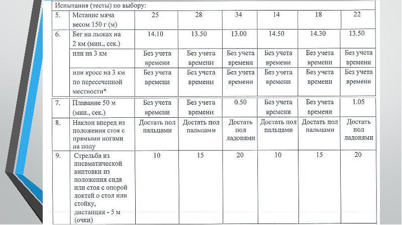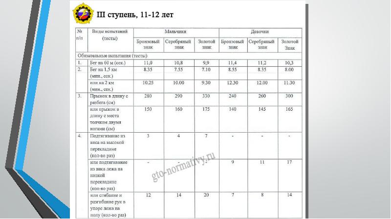 - 7. Некоторые нормы ГТО для юношей и девушек 16—18 лет