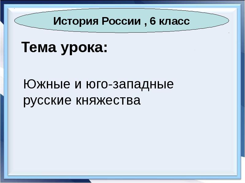 История России, 6 класс Тема урока: Южные и юго-западные русские княжества презентация