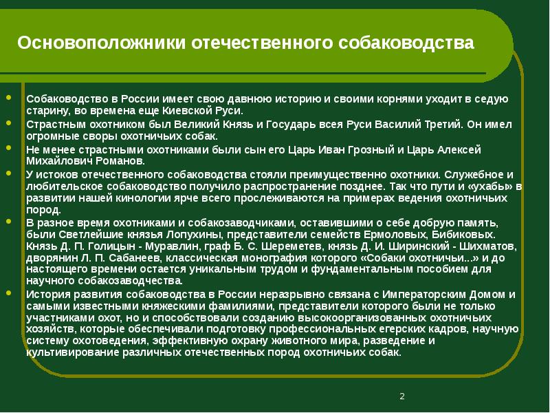 - 2. Основоположники отечественного собаководства Собаководство в России имеет свою давнюю историю и