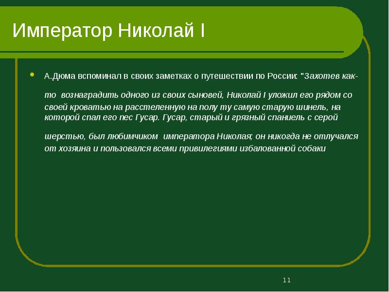 - 11. Император Николай I А.Дюма вспоминал в своих заметках о путешествии