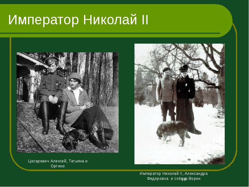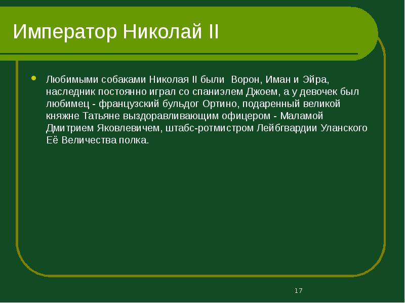- 17. Император Николай II Любимыми собаками Николая II были Ворон, Иман