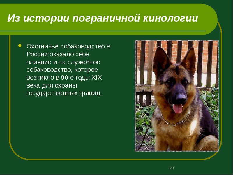 - 23. Из истории пограничной кинологии Охотничье собаководство в России оказало свое влияние