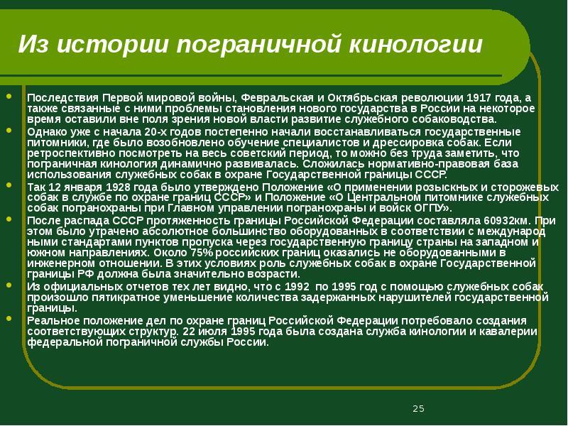 - 25. Из истории пограничной кинологии Последствия Первой мировой войны, Февральская и Октябрьская