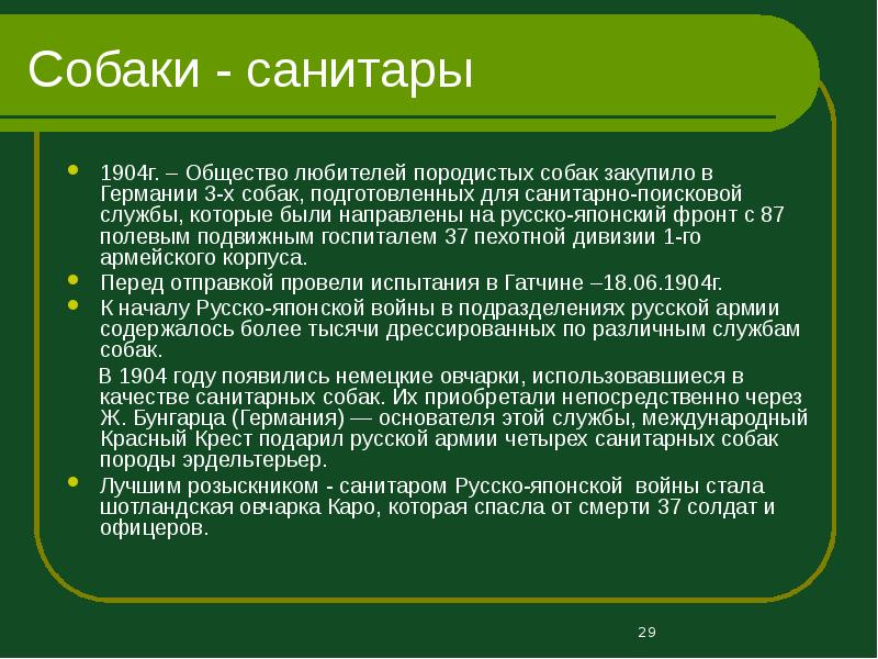 - 29. Собаки - санитары 1904г. – Общество любителей породистых собак закупило в