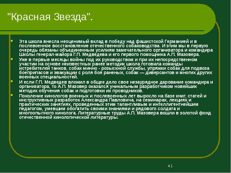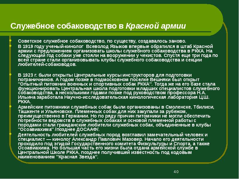 - 40. Служебное собаководство в Красной армии Советское служебное собаководство, по существу,