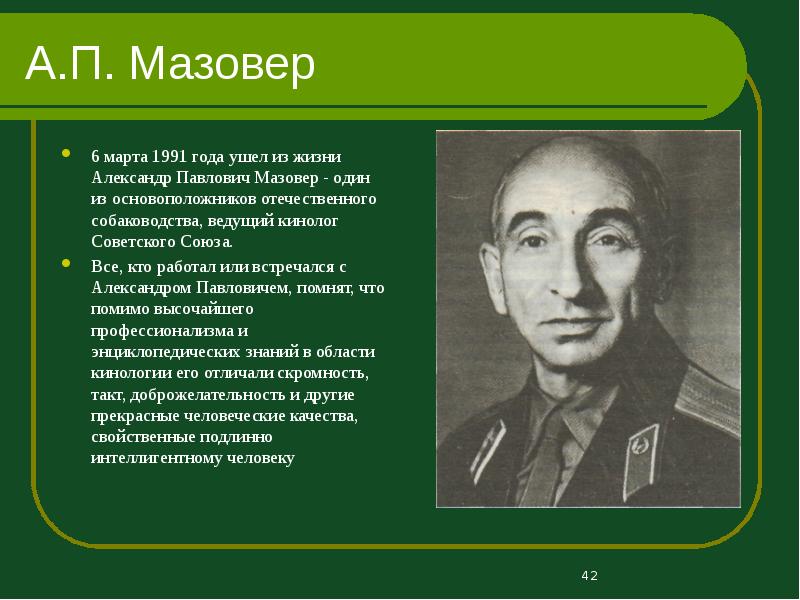 - 42. А.П. Мазовер 6 марта 1991 года ушел из жизни Александр Павлович