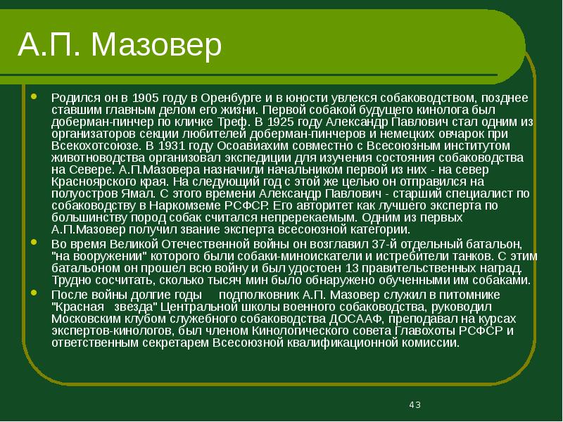 - 43. А.П. Мазовер Родился он в 1905 году в Оренбурге и в
