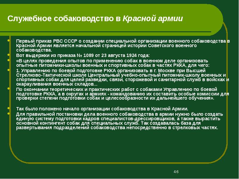 - 46. Служебное собаководство в Красной армии Первый приказ РВС СССР о создании