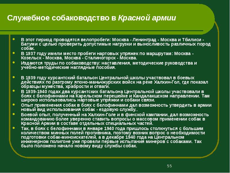 - 55. Служебное собаководство в Красной армии В этот период проводятся велопробеги: Москва