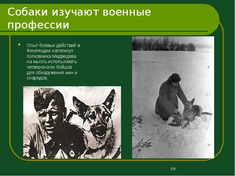 - 56. Собаки изучают военные профессии Опыт боевых действий в Финляндии натолкнул полковника