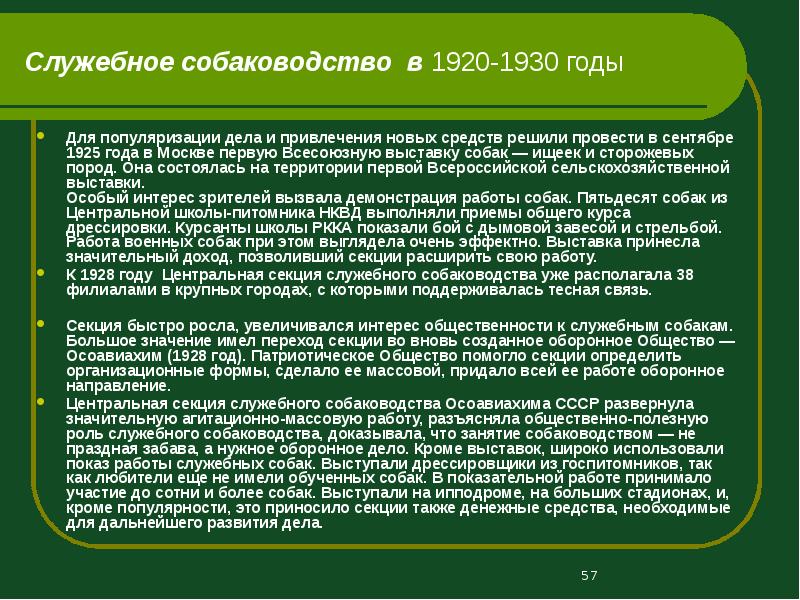 - 57. Служебное собаководство в 1920-1930 годы Для популяризации дела и привлечения новых