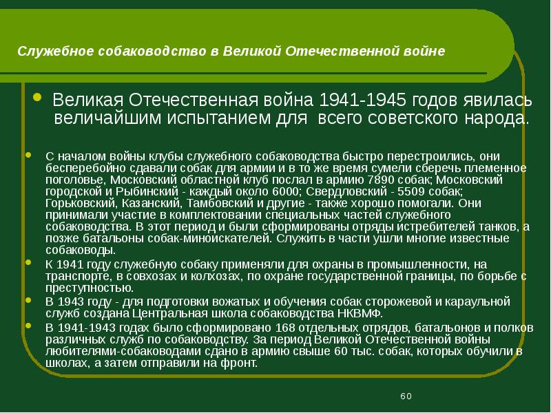 - 60. Служебное собаководство в Великой Отечественной войне Великая Отечественная война 1941-1945