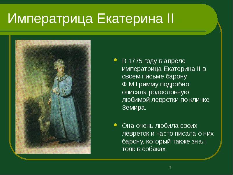 - 7. Императрица Екатерина II В 1775 году в апреле императрица Екатерина II