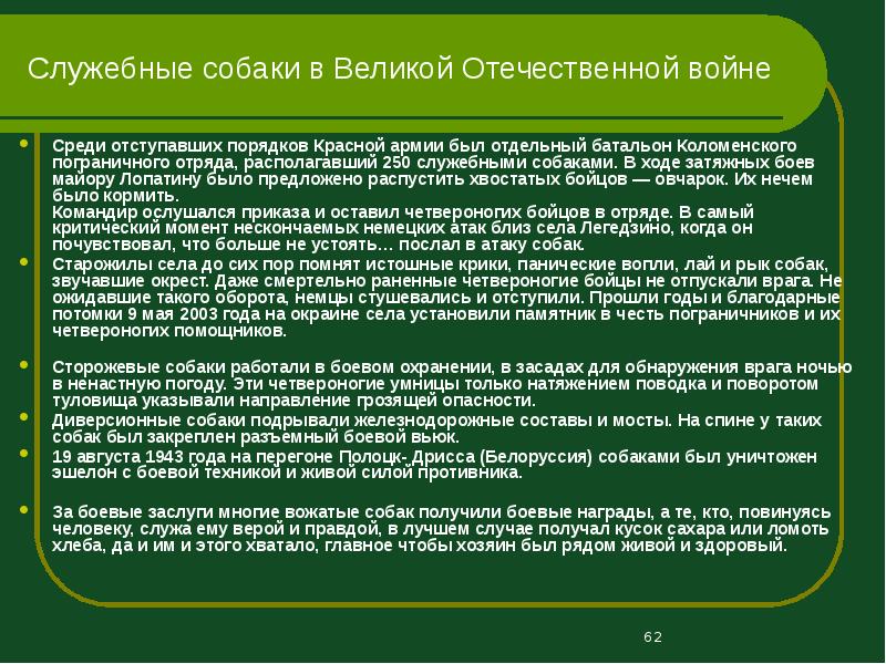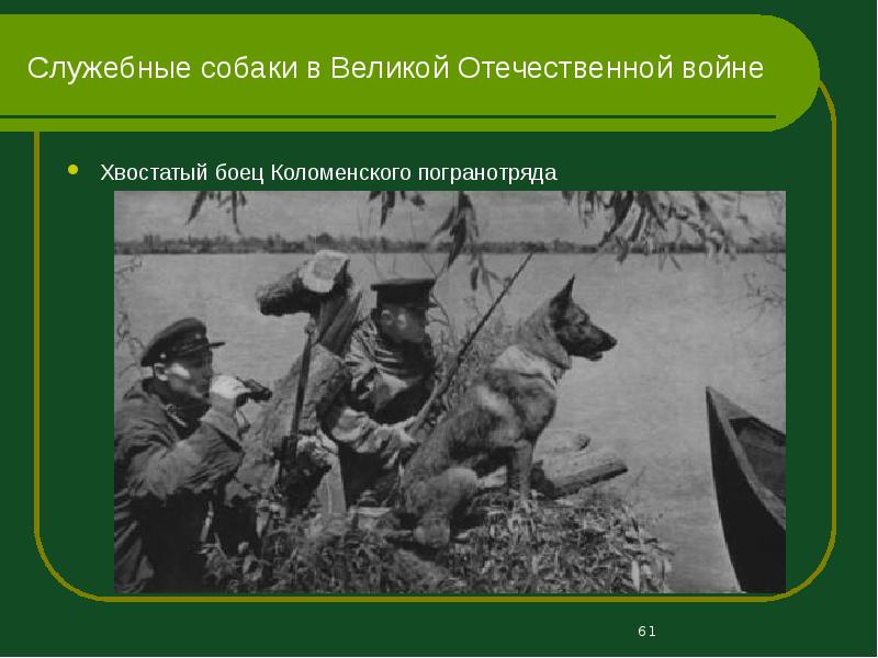 - 61. Служебные собаки в Великой Отечественной войне Хвостатый боец Коломенского погранотряда